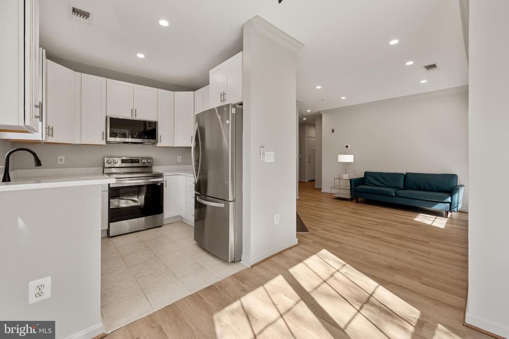 Welcome home to the Palazzo at Park Center! Gorgeously updated and move-in ready, this sophisticated light-filled corner unit delivers exceptional convenience and style in one of Alexandria's most accessible neighborhoods. Step inside to discover a bright, open floor plan enhanced by luxury vinyl plank flooring and thoughtfully curated finishes throughout. The heart of the home features a gorgeous kitchen with modern Shaker-style cabinetry, stainless steel LG appliances, and sleek granite countertops. Just outside the kitchen, the sunny dining area is surrounded by windows on two sides - a bright and airy setting only a corner unit can offer. The living room impresses with crown molding and a wood-burning fireplace, creating an elegant space perfect for relaxing and entertaining. Down the hall, the generously sized primary bedroom offers peaceful comfort with a modern ceiling fan and walk-in closet, while the second bedroom - ideal for a home office or guest space - enjoys private access to its own covered balcony. Both bedrooms share a stylish full bathroom conveniently located in the hallway. From the living area, step out onto a wide balcony - a perfect peaceful spot to enjoy your morning coffee or unwind after a long day. Completing this fantastic home, an outdoor storage closet off the balcony, in-unit laundry, one assigned parking space and plenty of nearby street parking provide the ultimate in convenience. Palazzo at Park Center residents enjoy resort-style amenities including an outdoor pool, fully equipped fitness center, and clubhouse. Less than half a mile to Harris Teeter, Starbucks, Silver Diner, LA Fitness, Dutch Girl Drycleaners and more! Just minutes to Target, The Mark Center, Amazon HQ2, The Pentagon, Old Town Alexandria, Pentagon City, and the Village at Shirlington - offering quick access to Shirlington Library, AMC Cinemas, and local favorites like Carlyle and Guapo's. Commuters benefit from easy access to public transportation with the free DASH Bus and Pentagon Transit Center directly from the community, plus nearby major routes including I-395, I-495, Route 7, Van Dorn Street, Columbia Pike, Glebe Road, and I-66. Schedule a private tour of your beautiful new home today!
